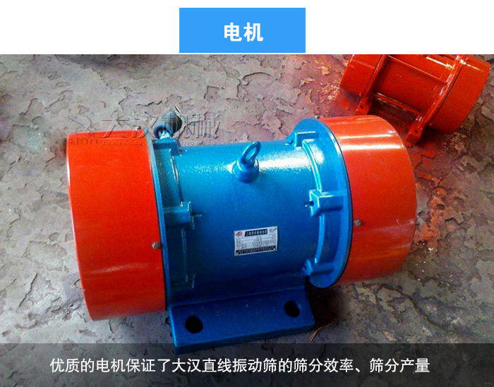大漢統一采用知名品牌電機,保證持續運行狀態下的性能,穩定的高功率輸出,優越的耐高溫性能。優質的電機保證了大漢直線振動篩的篩分效率、篩分產量。