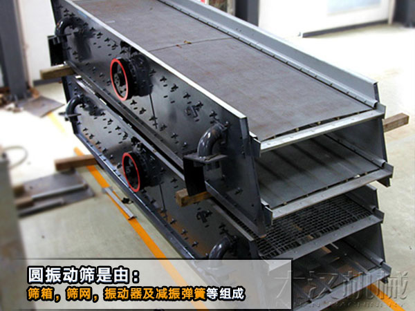圓振動(dòng)篩是指物料網(wǎng)面上做圓形運(yùn)動(dòng),其主要是由:篩箱,篩網(wǎng),振動(dòng)器及減振彈簧等組成。常用在:煤炭,冶金,礦山等部門。