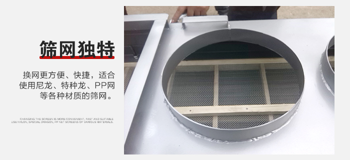 4、篩網(wǎng)獨(dú)特設(shè)計(jì)使篩網(wǎng)使用壽命更長,換網(wǎng)更方便、快捷,適合使用尼龍、特種龍、PP網(wǎng)等各種材質(zhì)的篩網(wǎng);