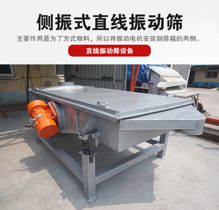 側振式直線振動篩主要作用是為了方式物料,在直線振動篩兩側停留,所以將振動電機安裝到篩箱的兩側。所以誕生了側振式的篩分設備。
