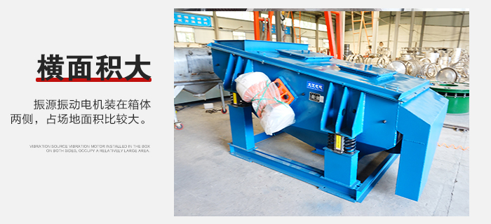 1:振源振動電機裝在箱體兩側,占場地面積比較大。