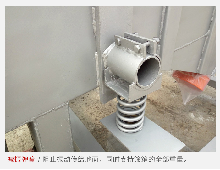 五、減振彈簧:阻止振動傳給地面,同時支持篩箱的全部重量,安裝時,彈簧必須垂直于地面。