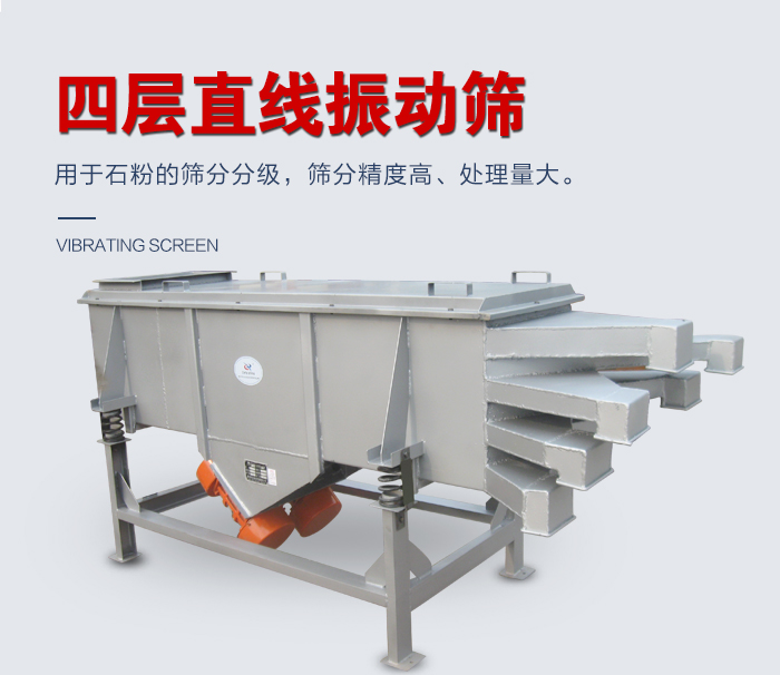 整機為碳鋼材質四層五出口,用于石粉的篩分分級,篩分精度高、處理量大。