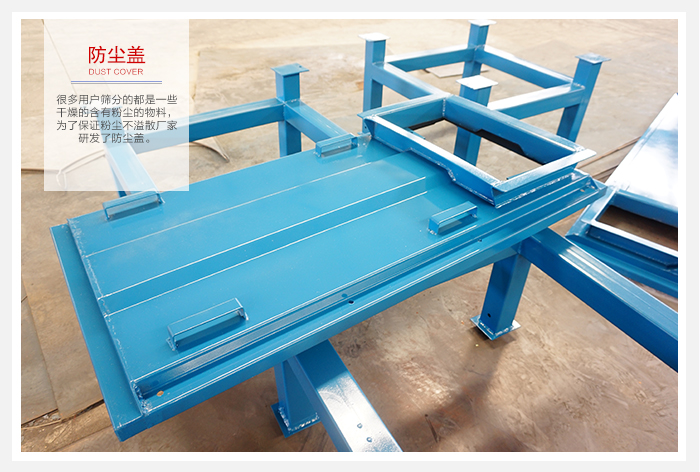 防塵蓋:很多用戶篩分的都是一些干燥的含有粉塵的物料,為了保證粉塵不溢散廠家研發了防塵蓋。