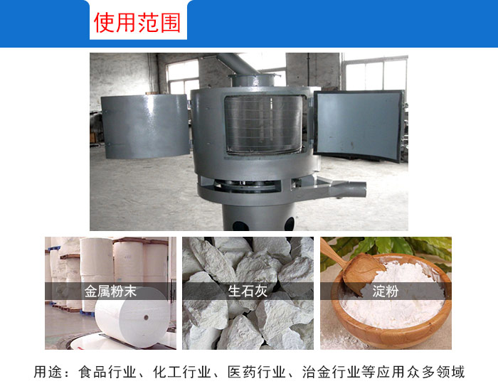 適用物料:氧化鋁粉、石墨粉、硫磺粉、輕鈣粉、活性鈣粉、活性碳粉、環氧樹脂粉、氧化鎂、淀粉、中藥粉、粉煤灰、鋅粉等。